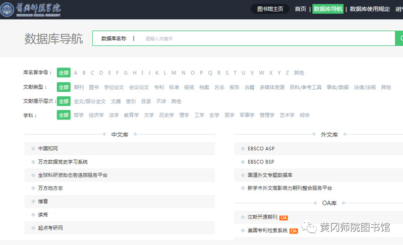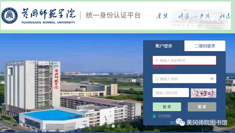 方法:进入黄冈师范学院图书馆官网——点击上方“数据库”——跳转到资源列表——点击所需数据库(或右上方“登录”)——会弹出统一认证界面——输入账号密码(帐号与密码与一卡通的帐号密码一致),即可在校外访问图书馆资源。(说明:在校外和在校内访问的方法一样)