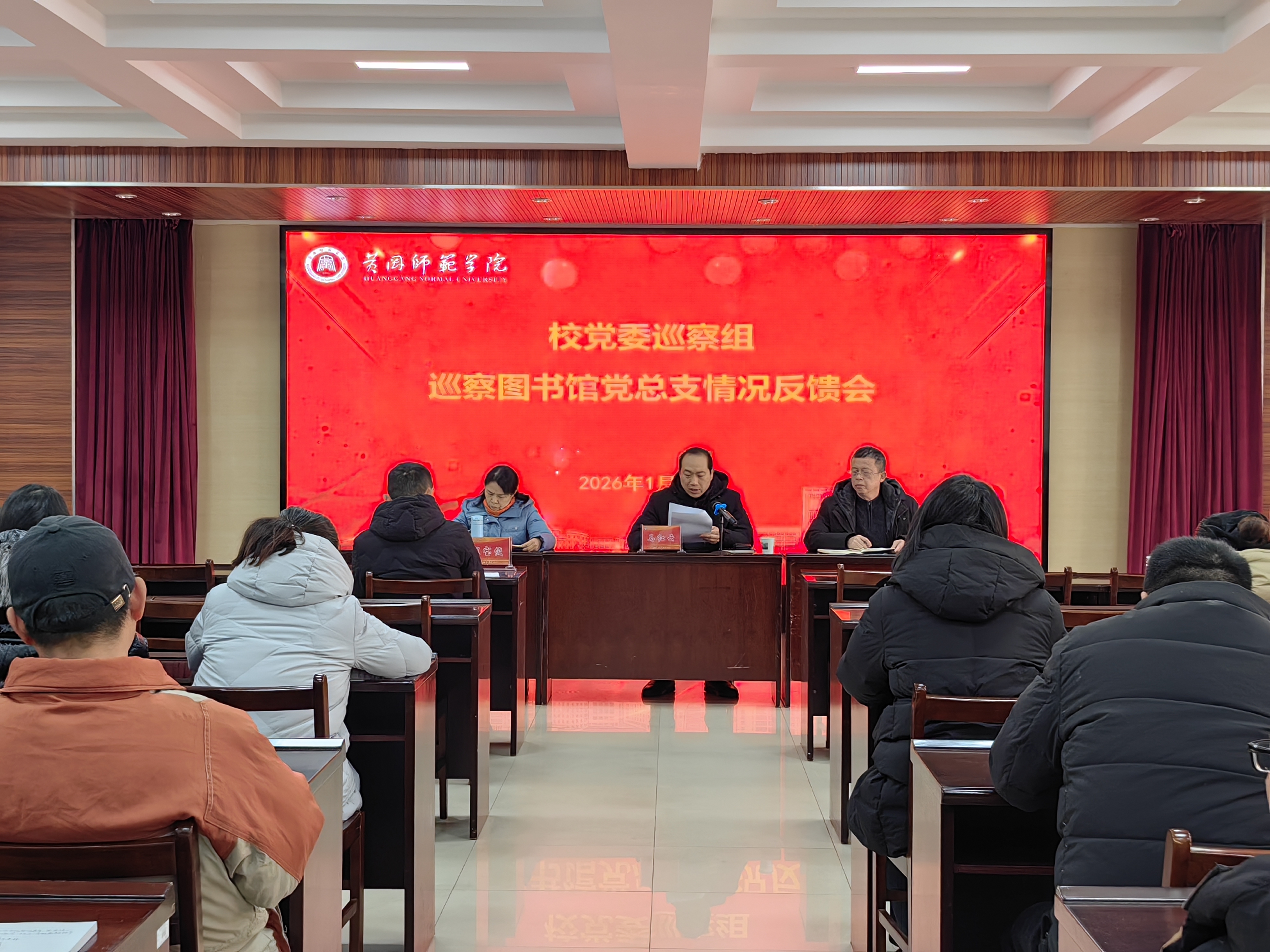党委巡察组工作人员,图书馆全体教职工参加会议。