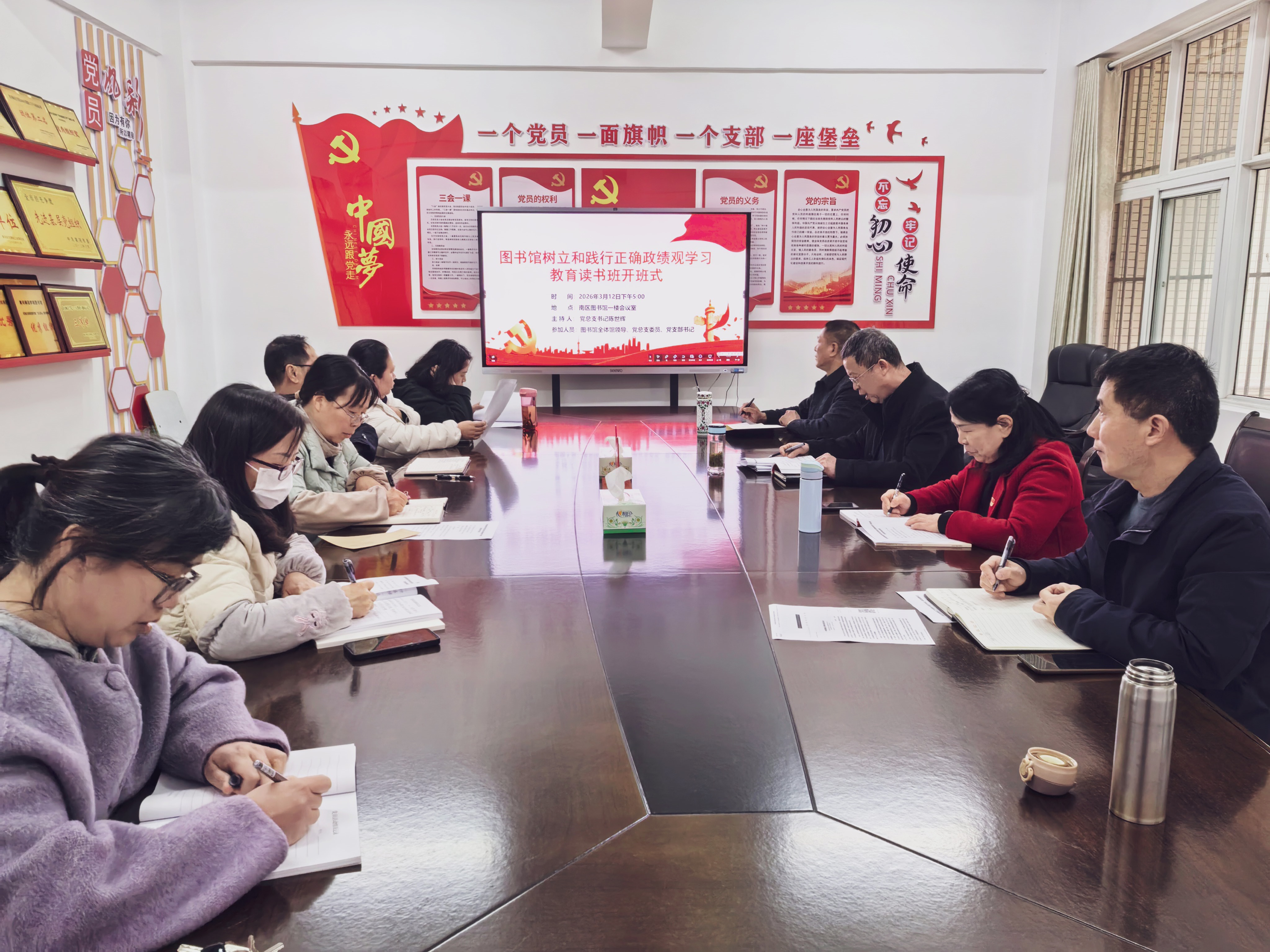 3月12日下午,图书馆在一楼会议室举行树立和践行正确政绩观学习教育读书班开班式。党总支书记陈世辉主持会议,全体馆领导、党总支、党支部委员参加。